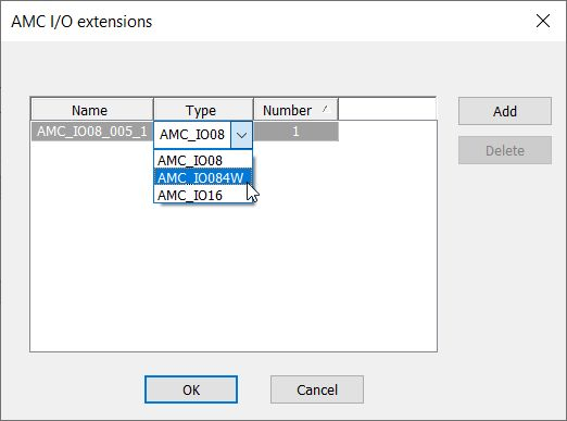 5. In the new screen that appears, double click the option under the "type" column. Select the option "AMC_IO084W" and then select Ok.