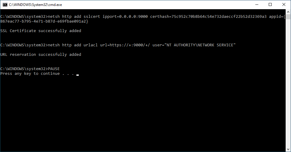 To create the certificate binding the following files are available within the SetupHttps folder: