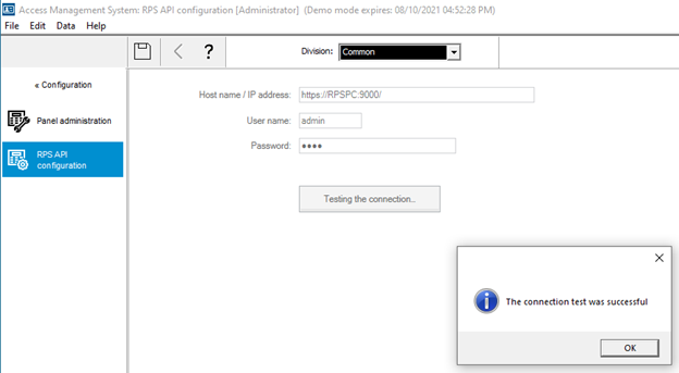 Verify all the values are correct and click Test the connection. A successful message will appear