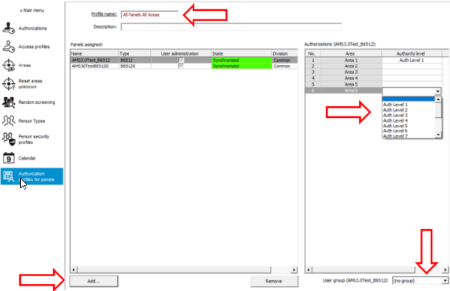 - Create authorization profiles and assign area(s) of panel(s) to it.