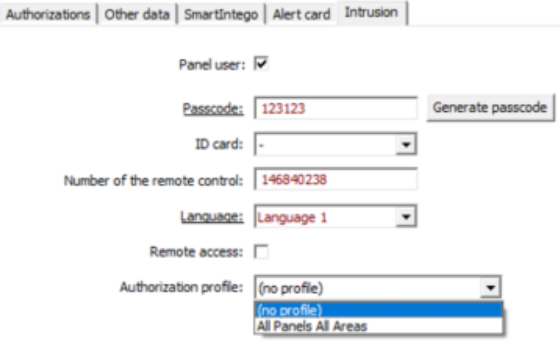 - Define to which user group of the intrusion panel will be this Authorization profile assigned