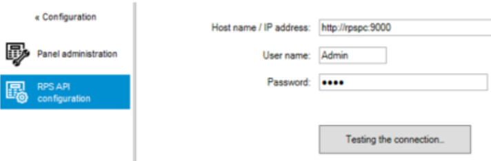 4. AMS > Configuration > Panels > RPS API configuration menu