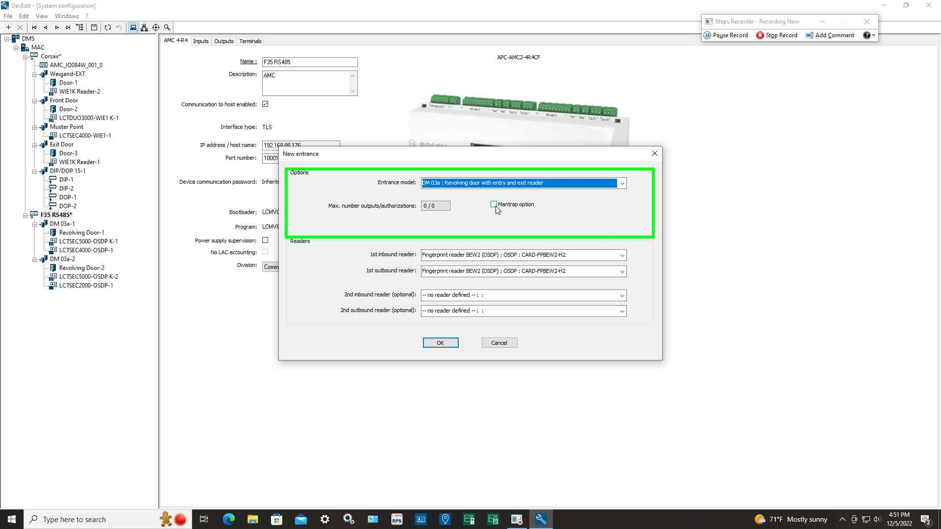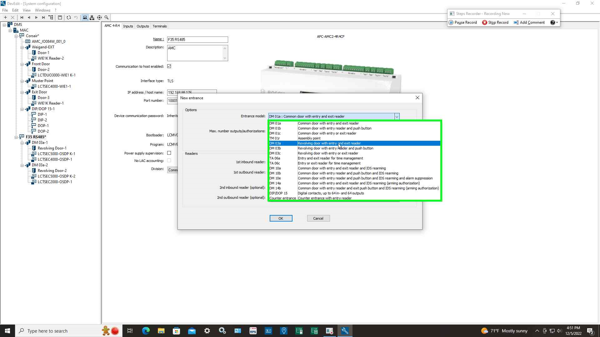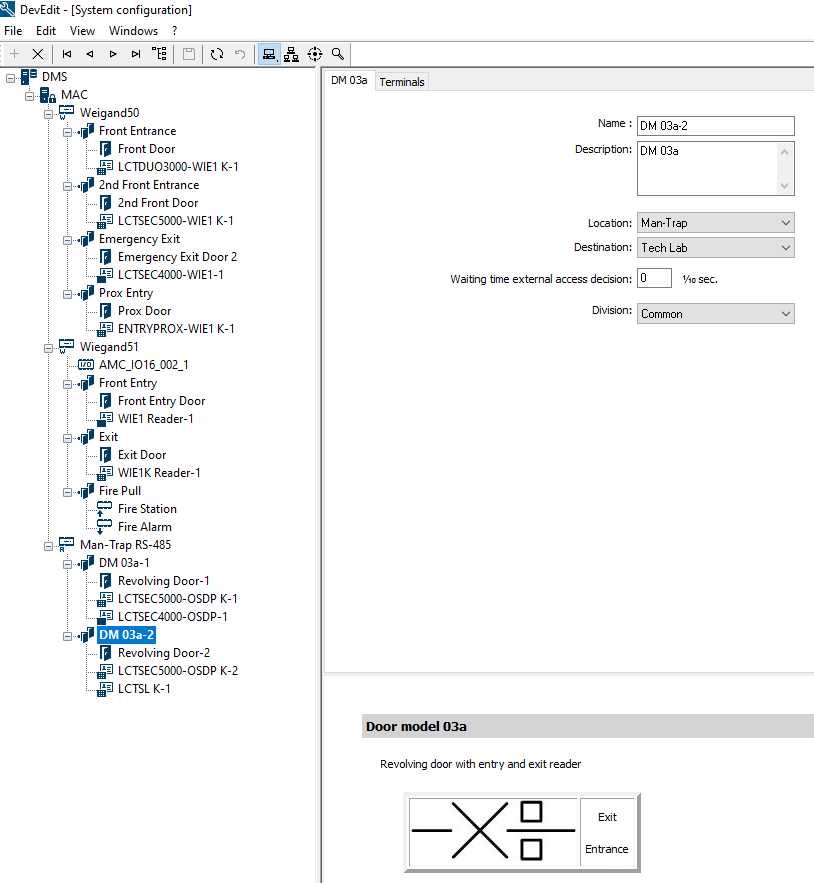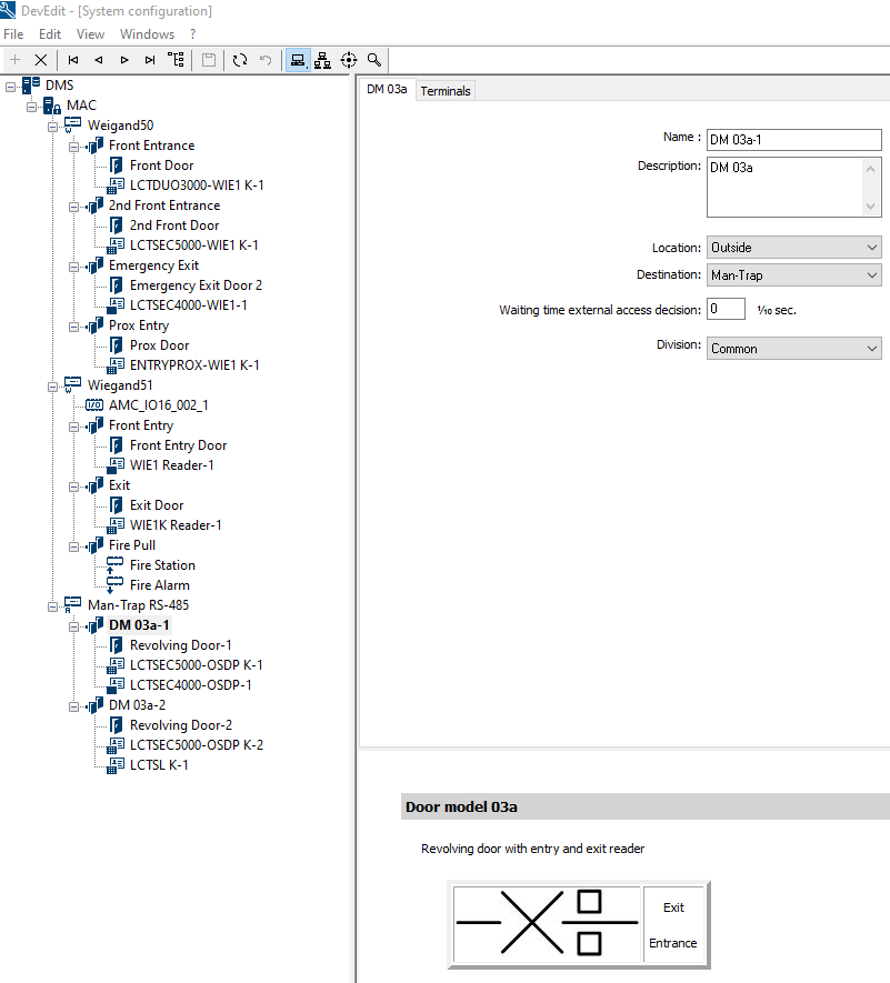 Step 4: Select entrance model "DM 03a Revolving door with entry and exit reader"