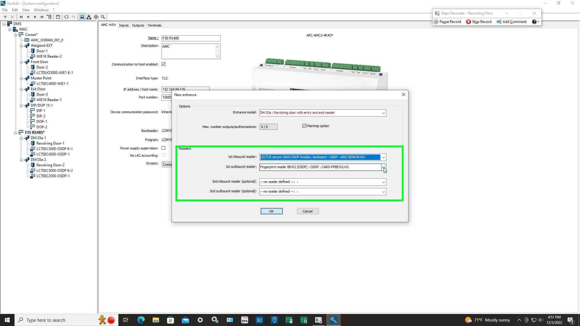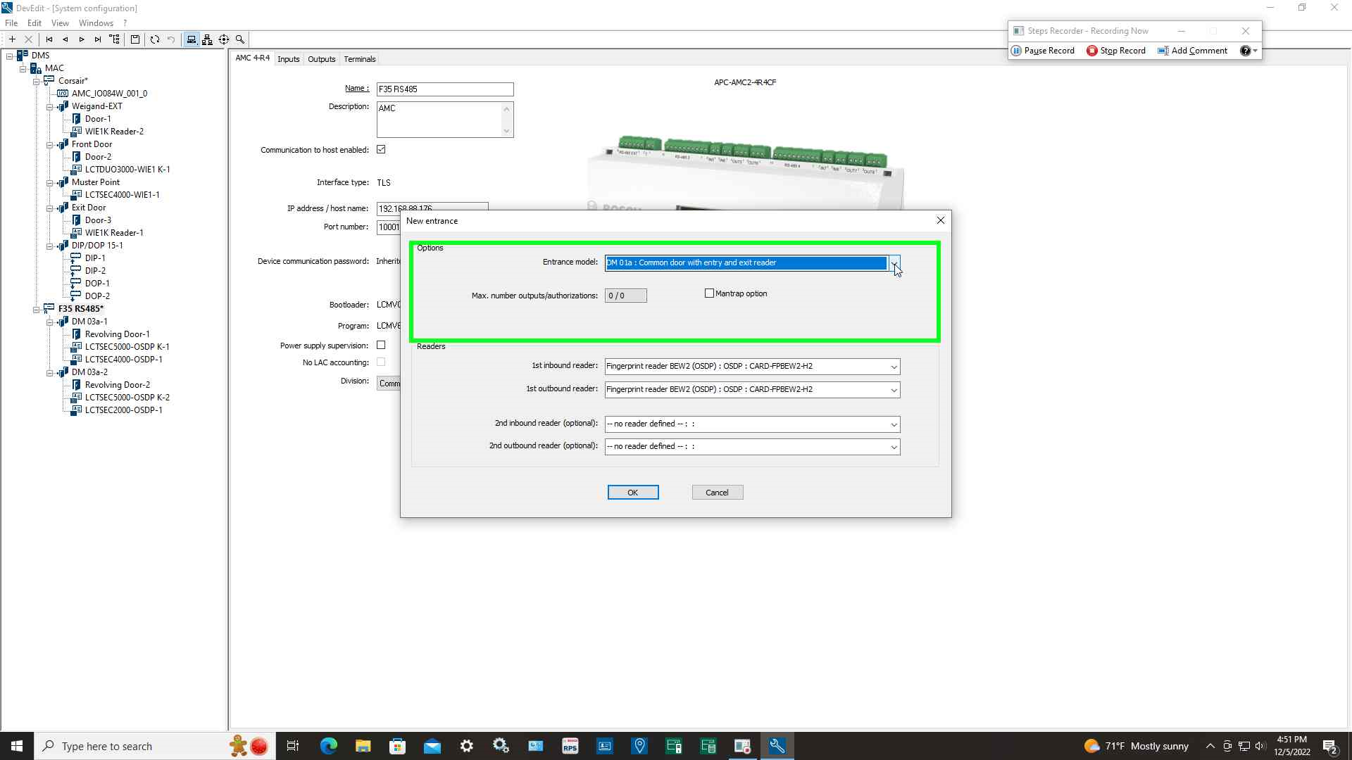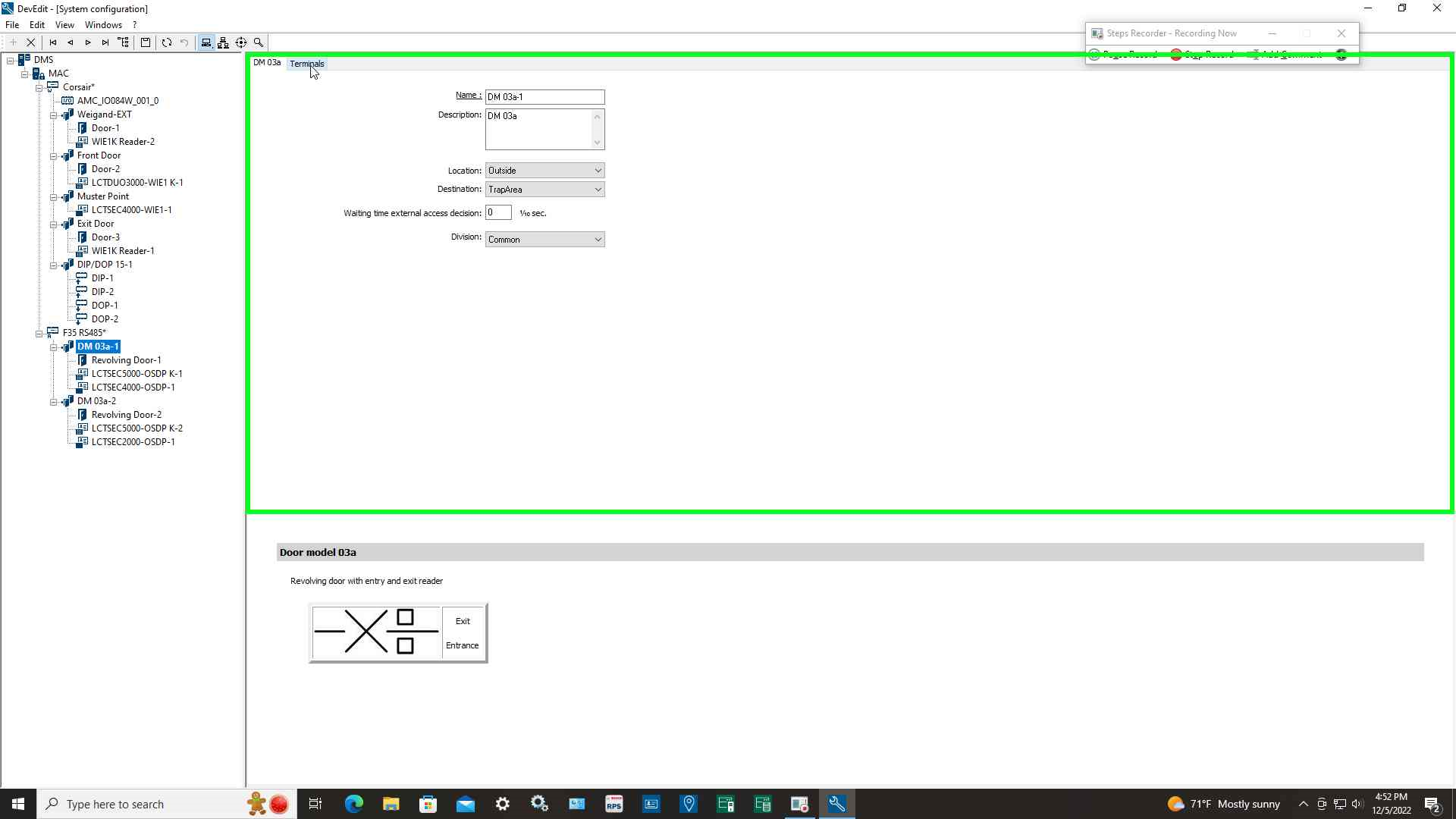 Step 4: Select entrance model "DM 03a Revolving door with entry and exit reader"