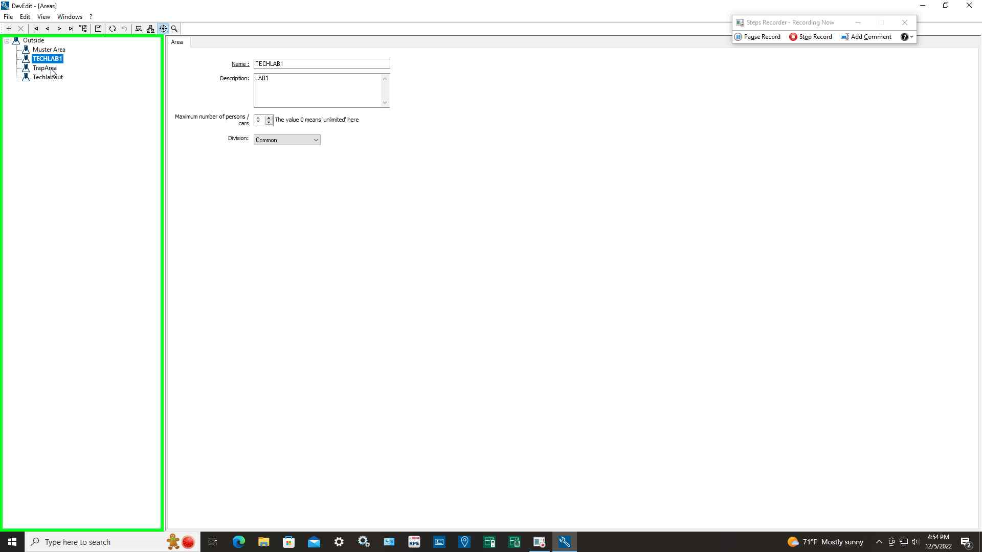 Step 13: User left click on "Man-trap-Area set number of persons to 1