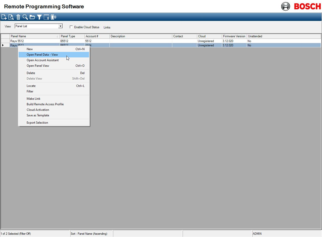 - Right-click on the panel and select "Panel View-data"