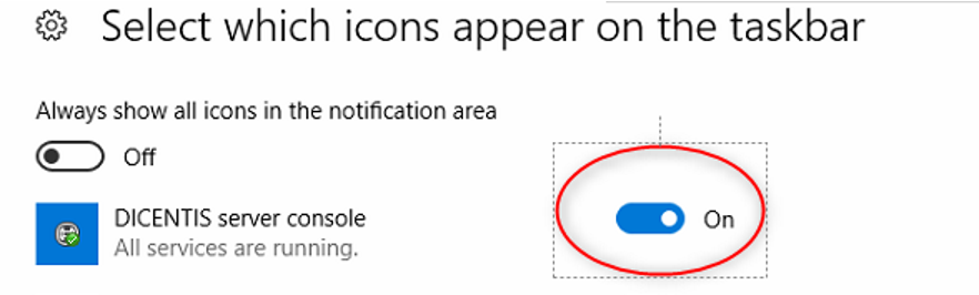 If you cannot see this the Server icon in the right corner of your display the DICENTIS Server service is most of the time still active but somehow not visible anymore.