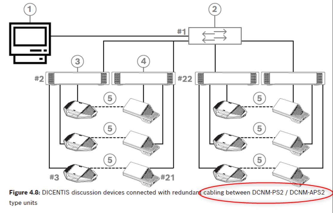This leads in a typical DICENTIS installation to an max of 19-17 discussion units in one loop.