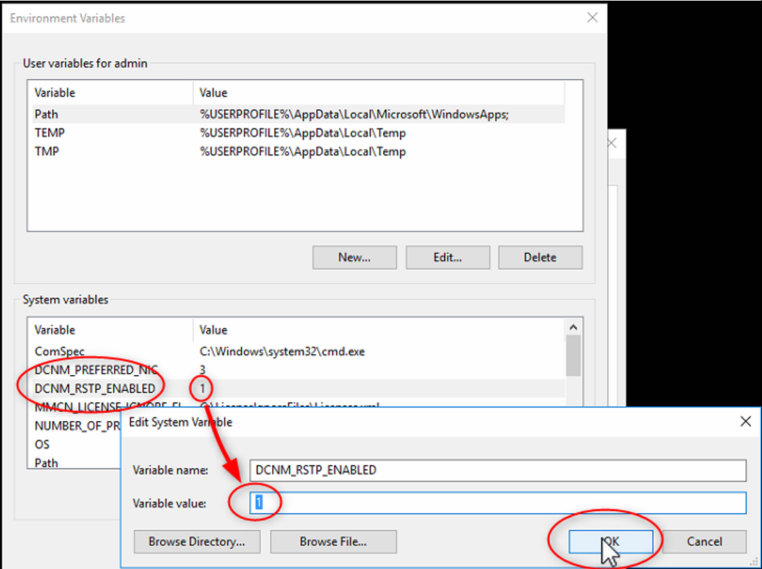 Create a system environment variable named DCNM_RSTP_ENABLED and set the value to 1 to enable RSTP, and 0 to disable RSTP.