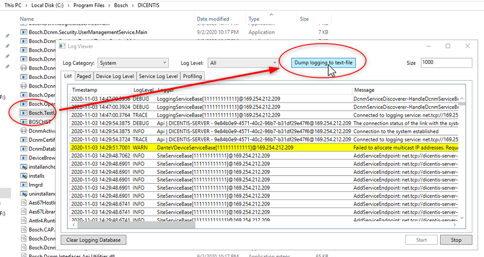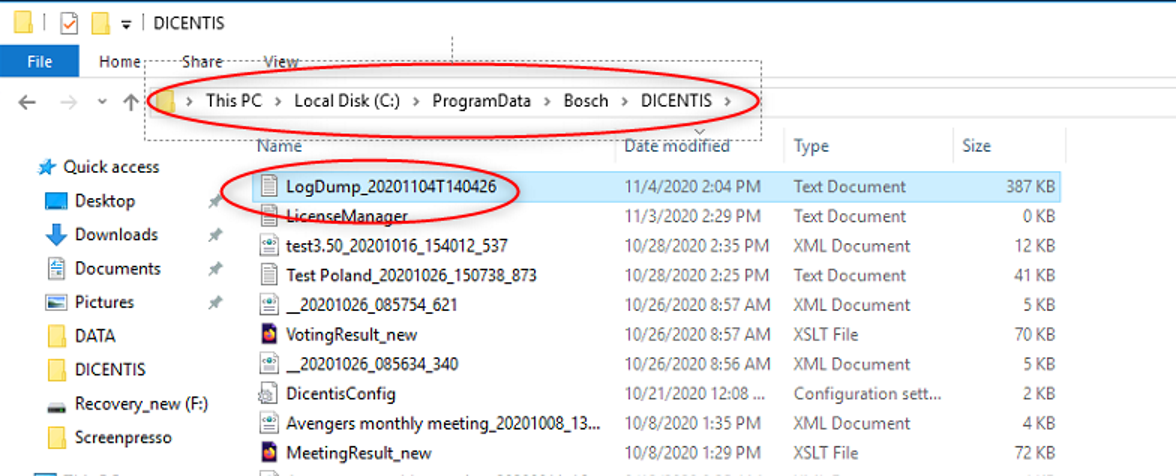 3. You can find your new created LogDump log file under C:\ProgramData\Bosch\DICENTIS