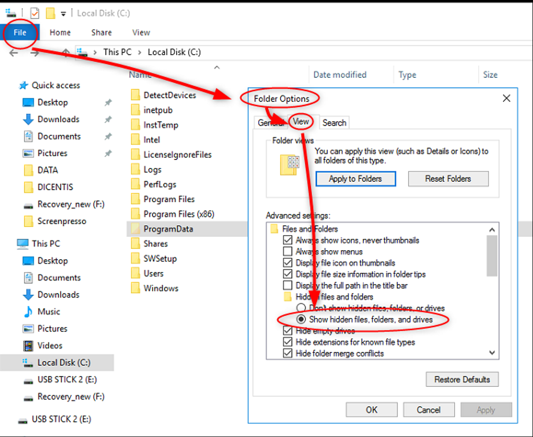 If you can't find ProgramData file you have first to activate" Show hidden files…".