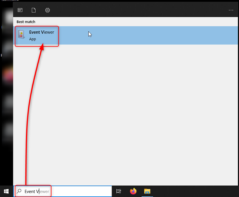 or you simply type Event Viewer in the Windows search column.