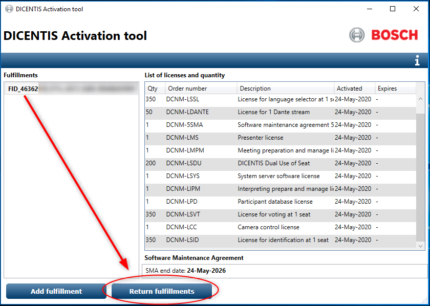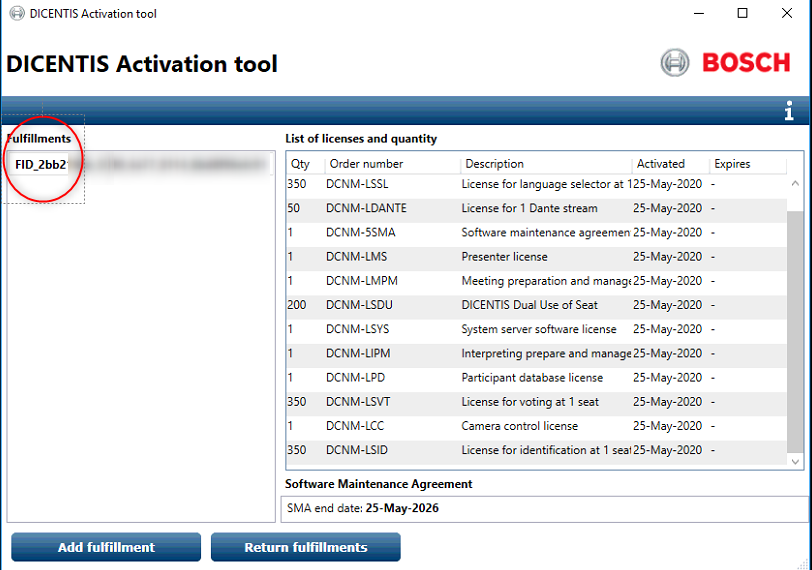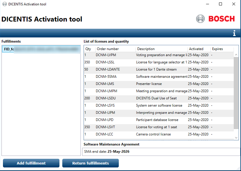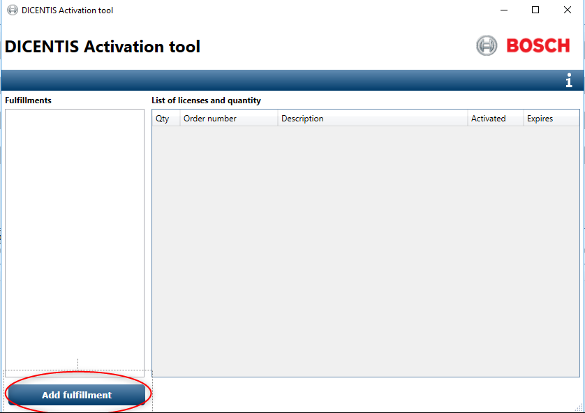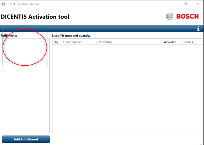 7. To activate a license click on "Add fulfillment" in the "DICENTIS Activation tool"