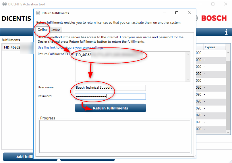 Select your Return Fulfillment tip in your User name and Password and click on "Return fulfillments". It is the same Login as on the "System Activation Site".