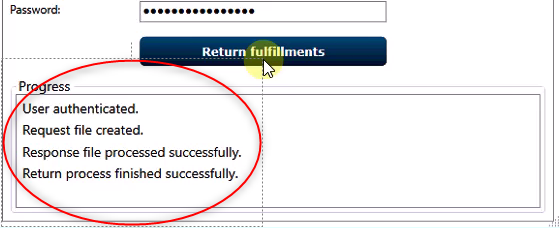 6. At the bottom you will see the Progress of the the Return process and the site it will be automatically closed after it is finished. If some error occurred, the site will stay open and the program will give an error warning in this column as well.