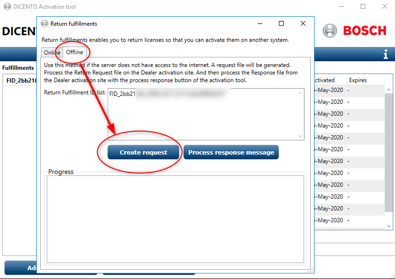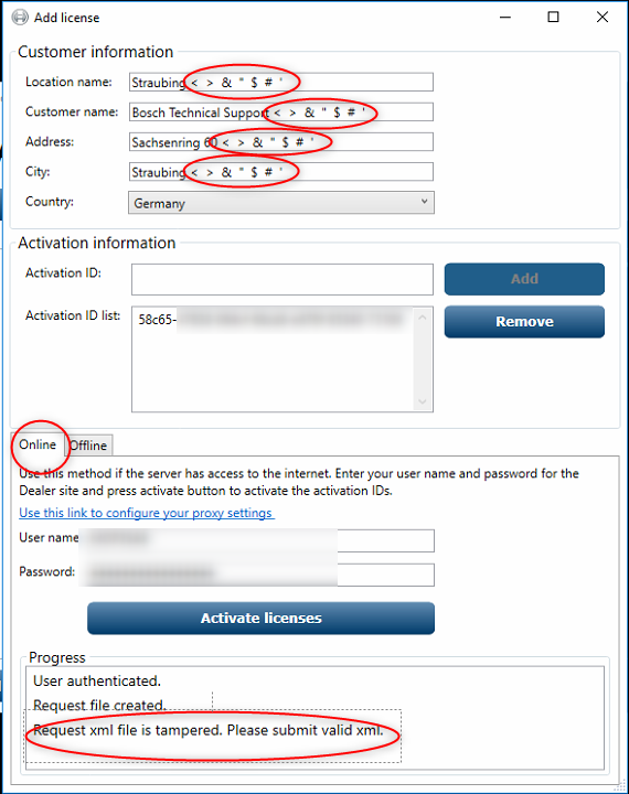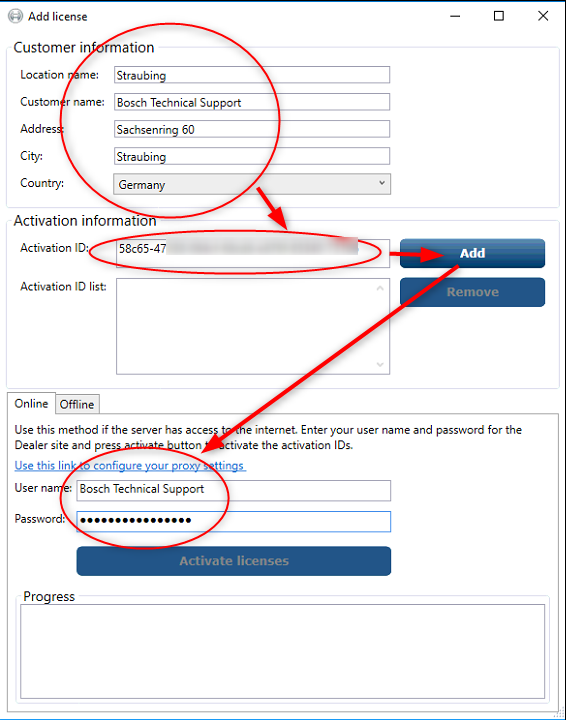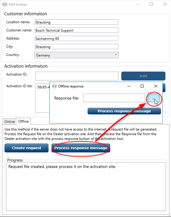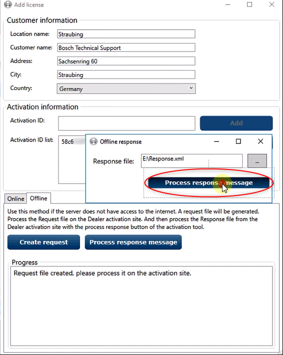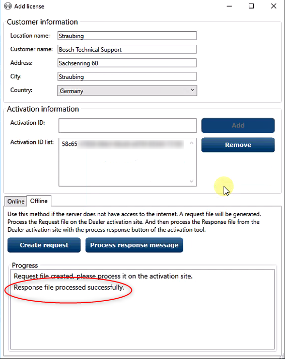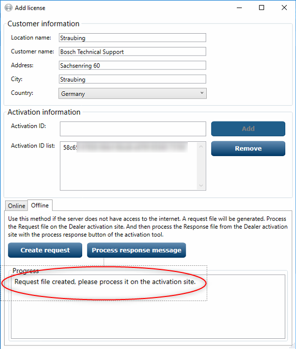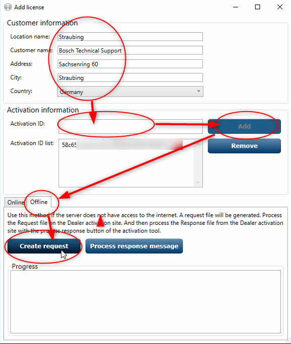 22. Type in your "Customer information" and your "Activation ID:" press "Add" and select "Offline". After this click on "Create request"