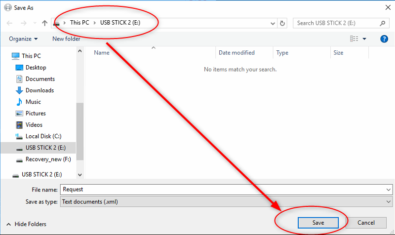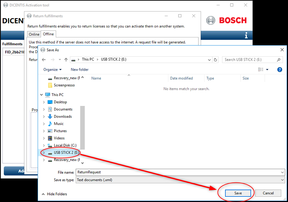 17. Save the "ReturnResponse.xml" file on USB stick and return to your Dicentis Server.