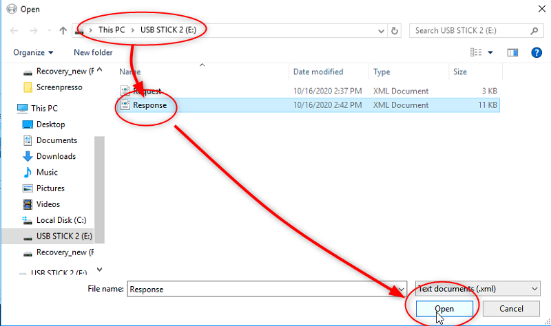 27. You will get a "Response.xml" file which should be saved on a external USB stick.