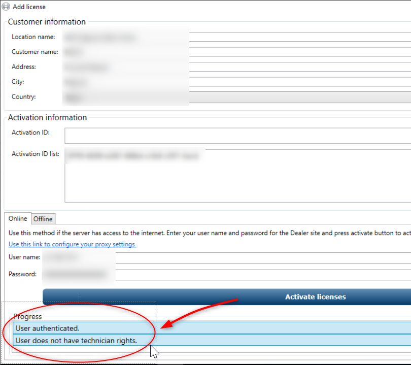 Also the user which is registered at the System activation suite needs technical rights or else you can not change the license.