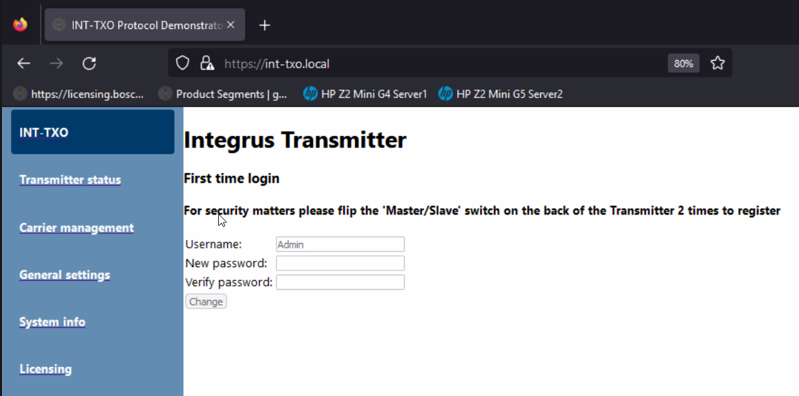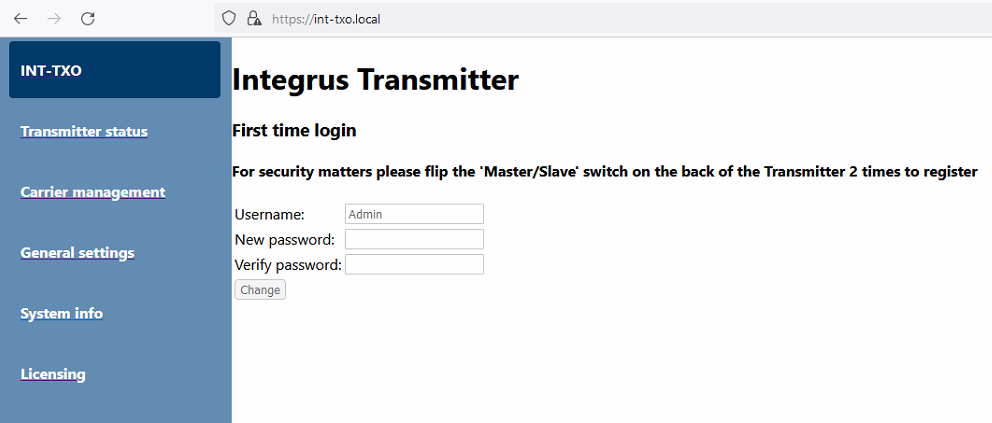 Here you have the option to change your host name and access page. If you have more than 1 Transmitter name it for example after the room wher it is used. int-maincourd. = https:// int-maincourd.local/