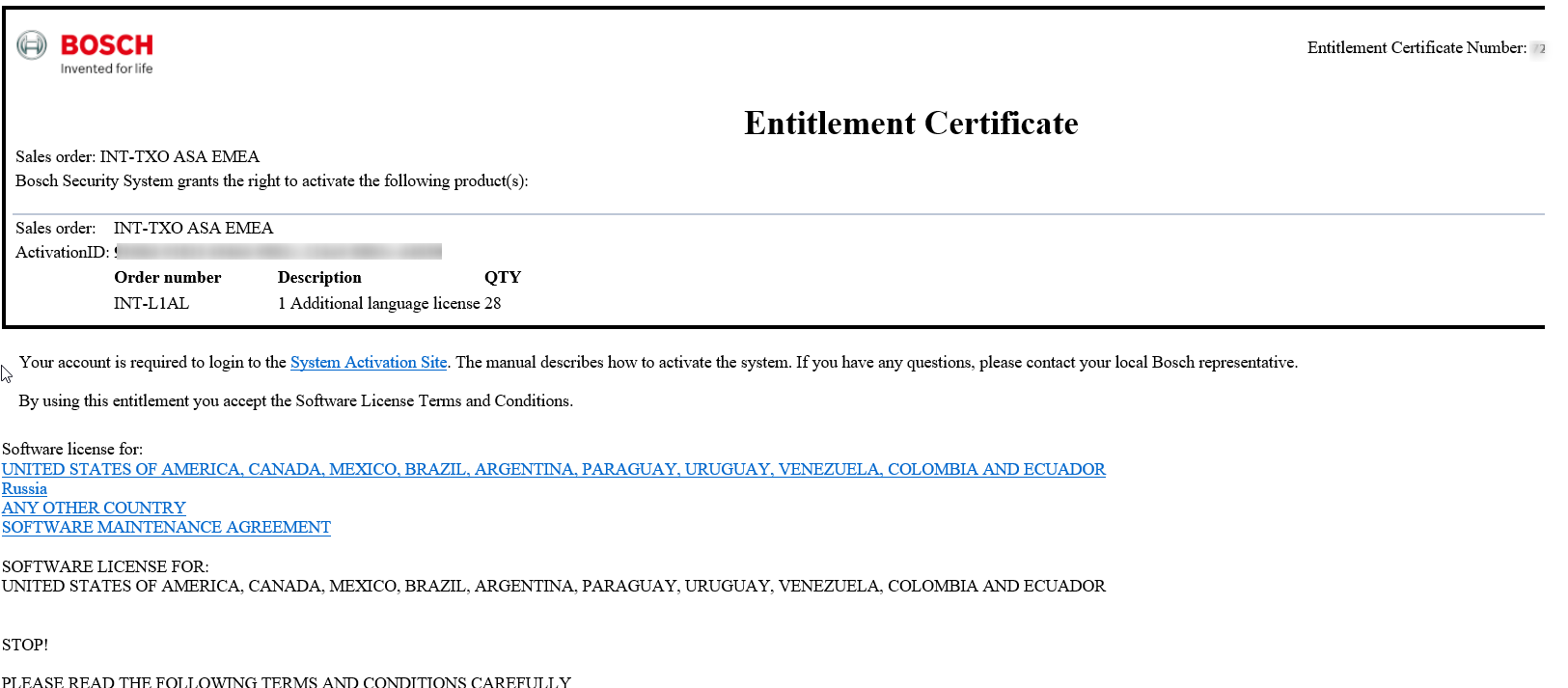 If you by an license you will get an Entitlement Certificate from Bosch.