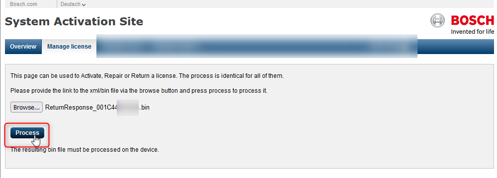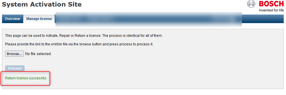 Process the ReturnResponse file in the System Activation Site to release this license.