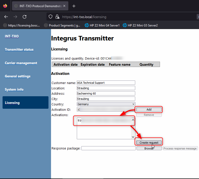Enter all your contact data , Add the Activation ID and create an license request file.