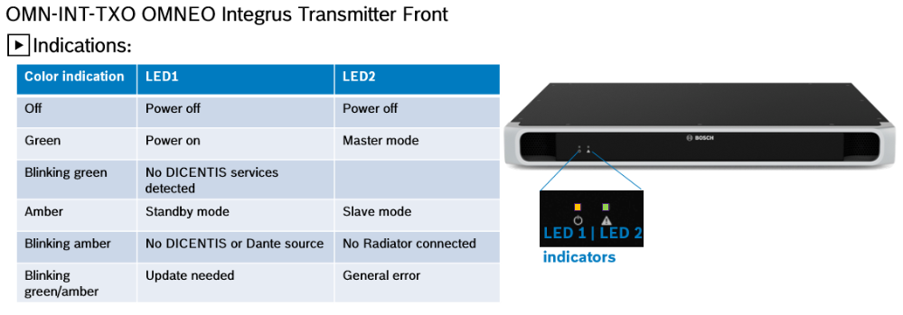 The new INT-TXO Integrus Transmitter integrates the Integrus system in the DICENTIS via OMNEO. Old Radiators and Receivers stay the same and existing equipment can be used in the DICENTIS now with the new INT-TXO transmitter. It is usable from software version 4.20 onward and is made for DICENTIS only usage at the moment. But it will be open up in future for the usage of 3rd party devices which than are planned to be managed with the Dante Controller software. Please visit our product page for more information.