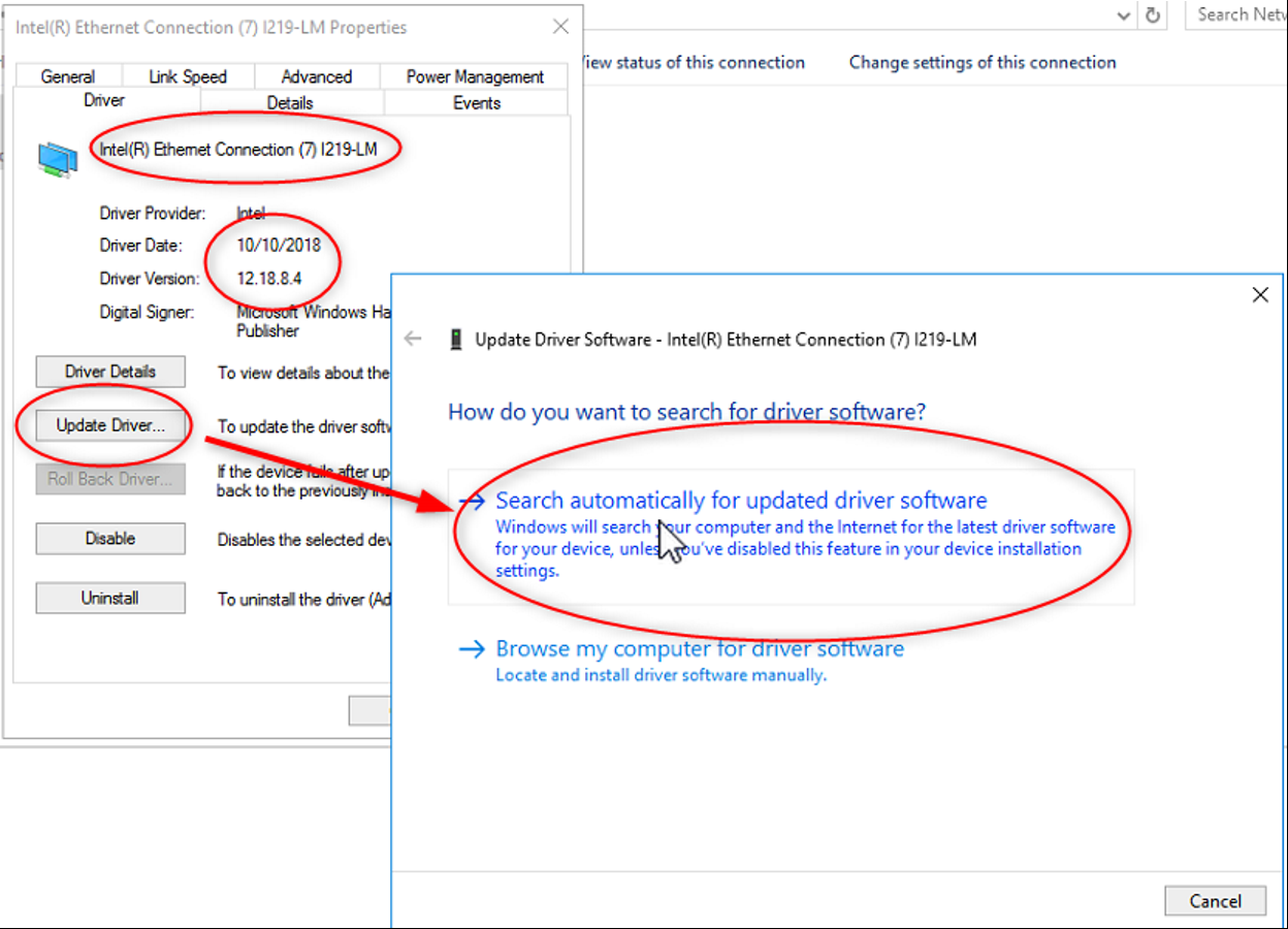 In some cases, especially if you use a 3rd party PC as DICENTIS Server, it could be necessary to update your network driver. For example, if discussion units show a red LED from time to time or your DICENTIS is dropping out it could be related to the network driver.Be aware that a normal Windows Update will not refresh this driver and you have to update it manually!