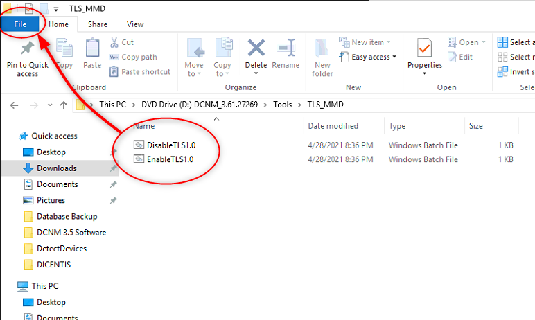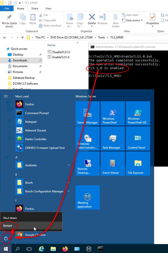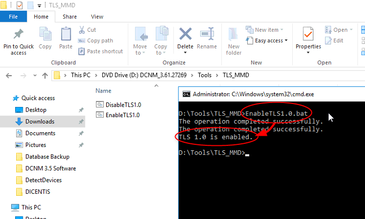- Run \Tools\TLS_MMD\EnableTLS1.0.bat from the DICENTIS Software DCNM.iso file