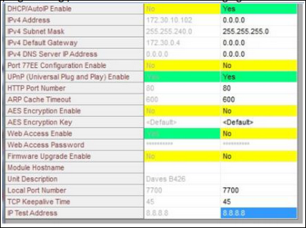 When the B420 or B426 has been programmed through the web interface and the setting; Panel Programming Enable has been set to NO, the B420 or B426 Ethernet Communicator module programming screen will look as displayed below with programming parameters not available for changing.