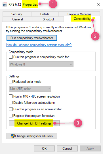 - Access the Properties page for the RPS executable file using one of the below methods.