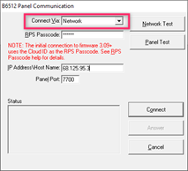RPS returns the message: Invalid Panel Type when attempting a network connection to a B8512G, B9512G or B-series panel.