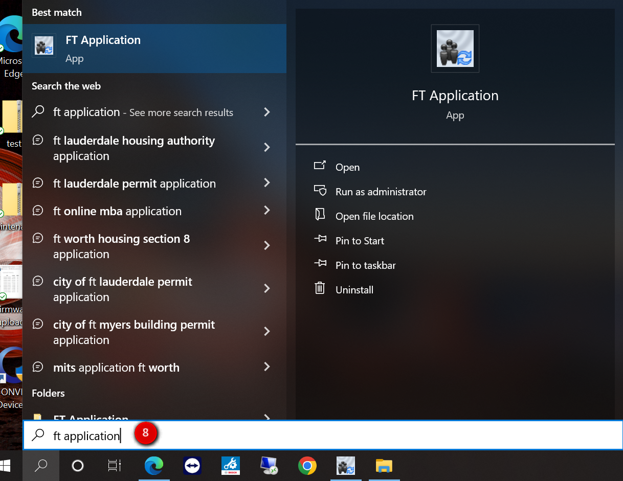 4. On the main Windows screen, search for the “FT Application” application.