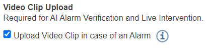 4. Enable 'Video Clip Upload' if required. (If video clip upload is disabled, an alarm snapshot is stored).