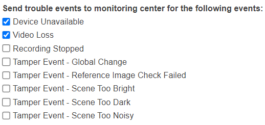 8. Select the required trouble and tamper warnings, which should be sent to the Monitoring Center and click 'Save Changes'.