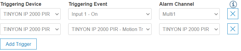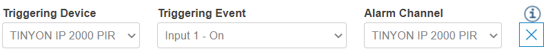 - If the trigger already implies an alarm channel (e.g. motion, VCA), the alarm channel is fixed and cannot be changed. In all other cases the alarm channel can configured to any channel of this site.