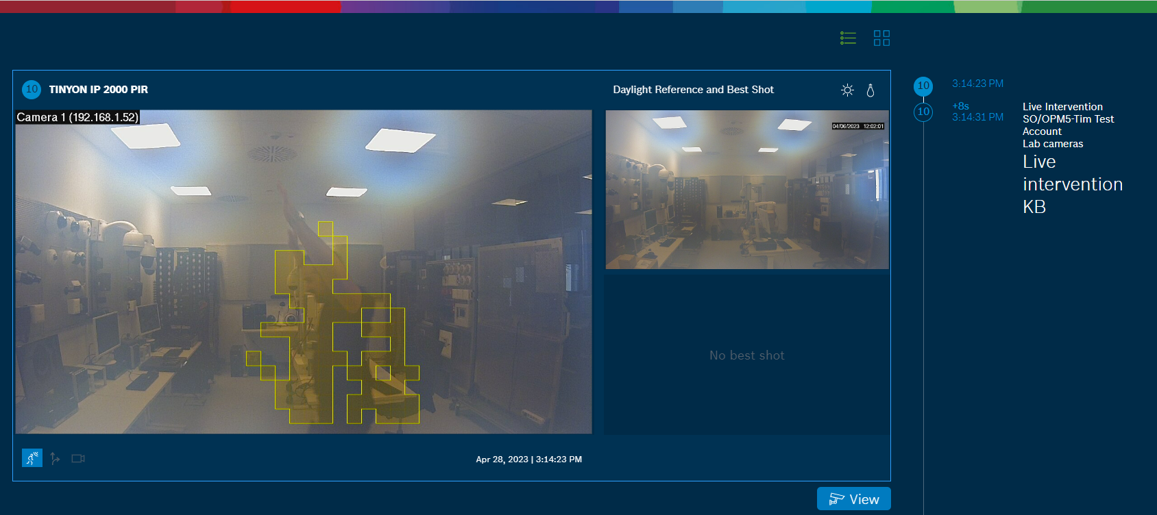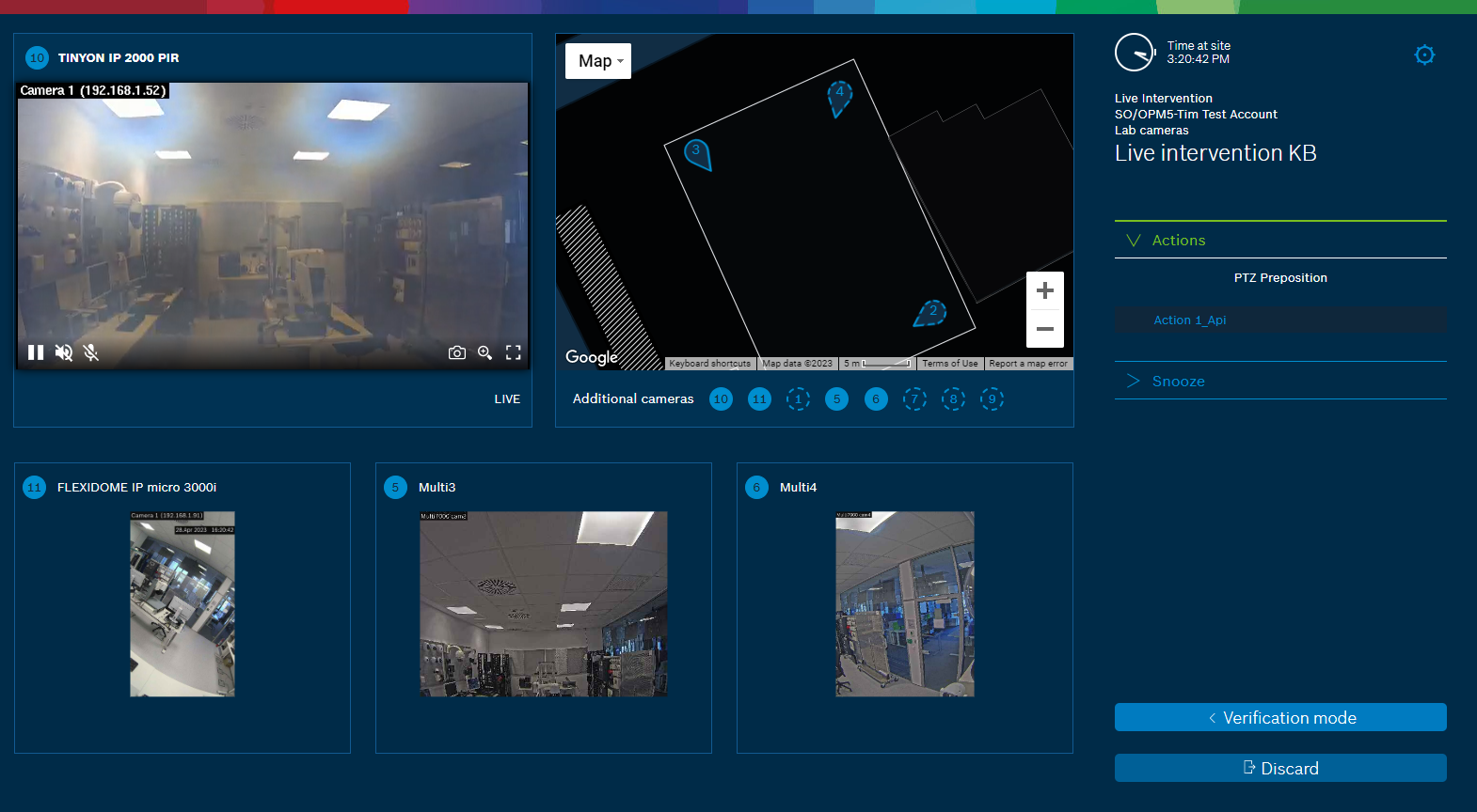 Note that a Live Intervention alarm is only forwarded to the Alarm Management Event list and to the Monitoring Center when the site is armed and the arming schedule is active.