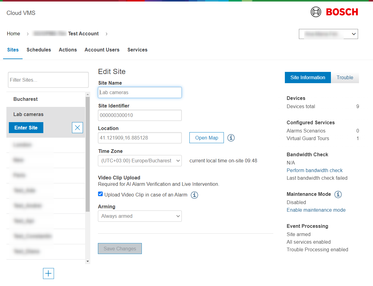 d. Optional arm/disarm the Site.