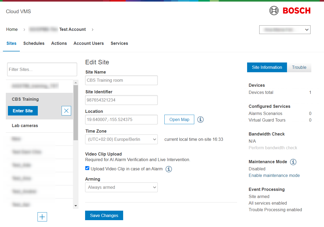 Note that a Virtual Assistant Alarm is forwarded to the Monitoring Center independent on the Alarm Schedule and Arming State of a Site.