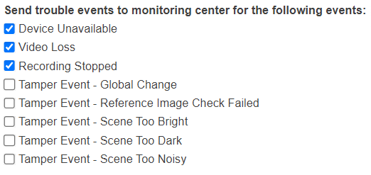 8. Select the required trouble and tamper warnings, which should be sent to the Monitoring Center and click 'Save Changes'.