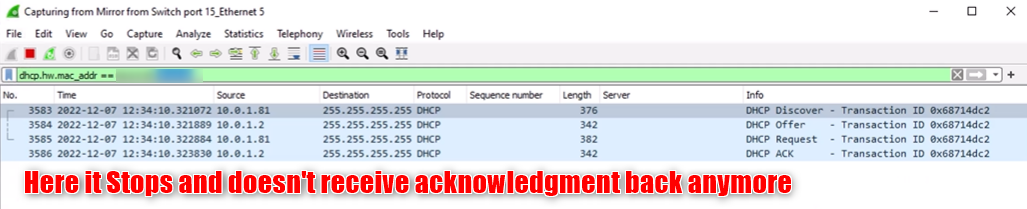 During a Wireshark capture, it was noticed that Bosch CPP7.3 Camera with FW v7.85.0016 does discover, offer, request and ACK. After that, there is no communication anymore with the DHCP server for several minutes.