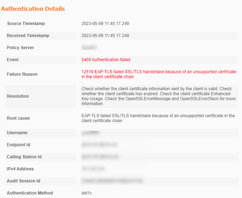 Bosch IP cameras: authentication failed in RADIUS server due to unsupported certificate