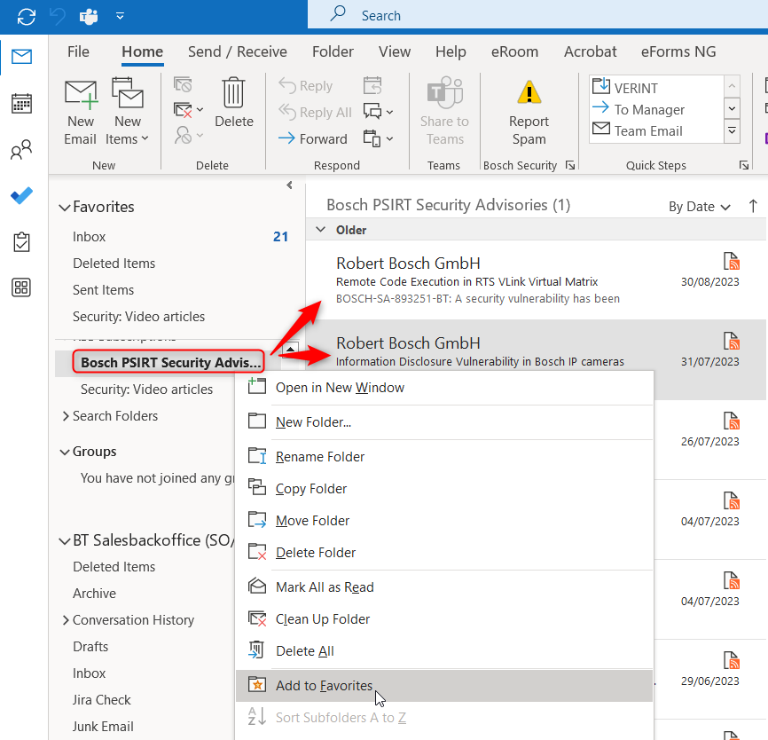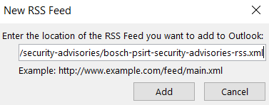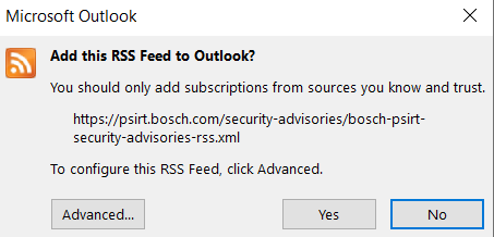 If you want to get notifications when a new Security Advisory is published is to subscribe to the RSS Feed directly on theBosch PSIRT Security Advisories website.