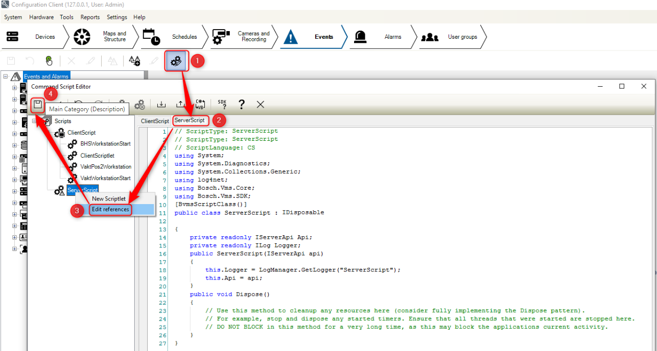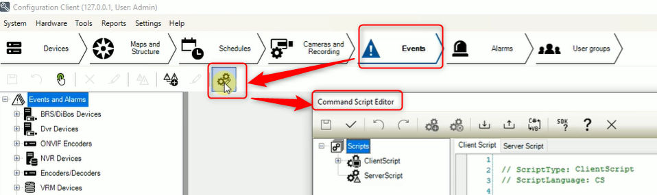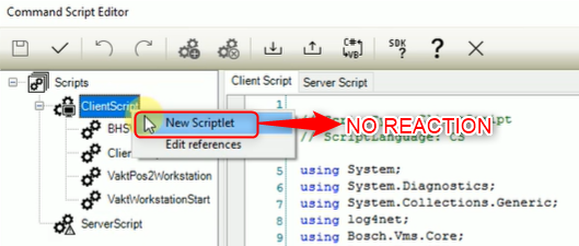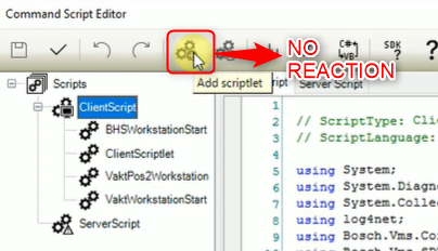 BVMS 10.1 Configuration Client: Add scriptlet Button is not functional and does not become active
