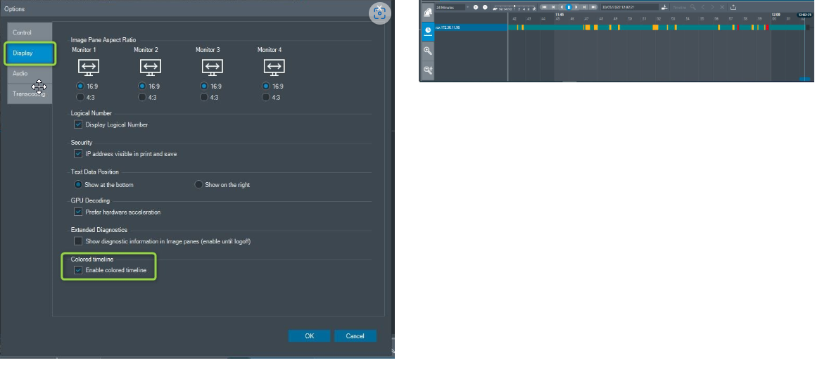 Activate the Colored timeline from Operator Client.
