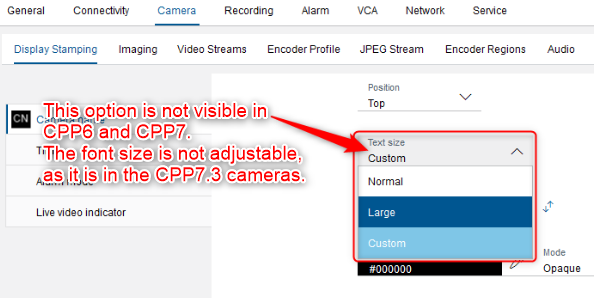 Camera display stamping becomes small after upgrade to FW 7.81.0060 for Bosch IP cameras CPP6 &CPP7