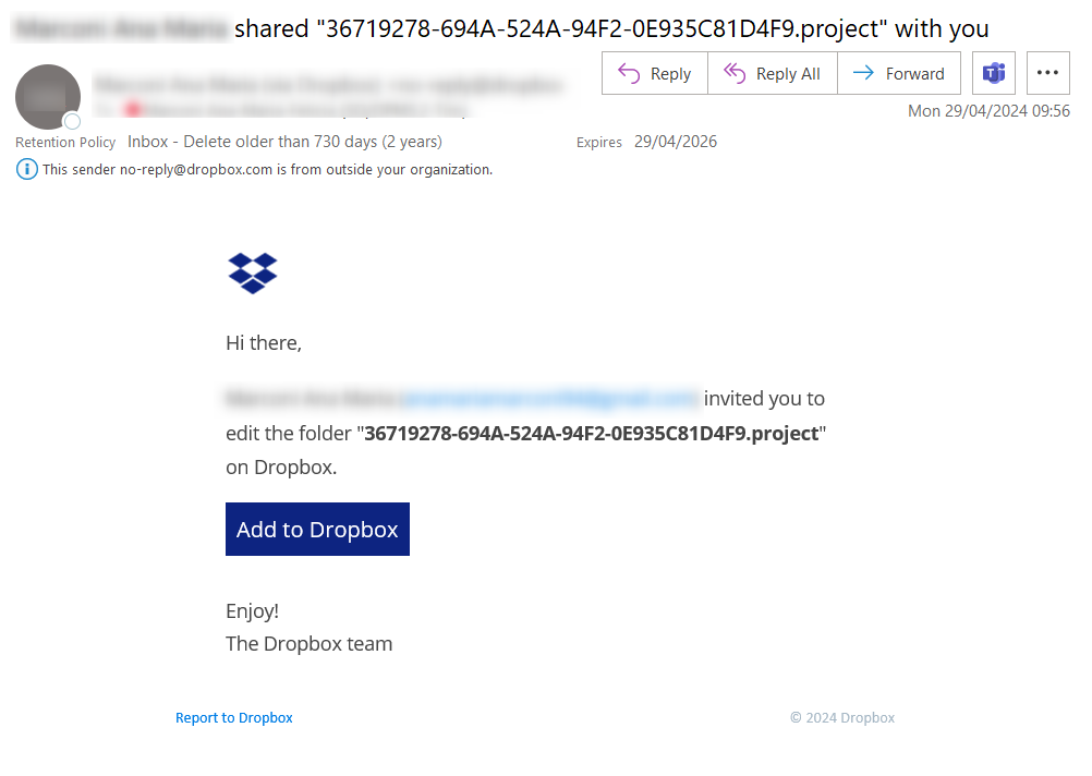 12. The associate you are sharing the project with will receive the notification via e-mail: