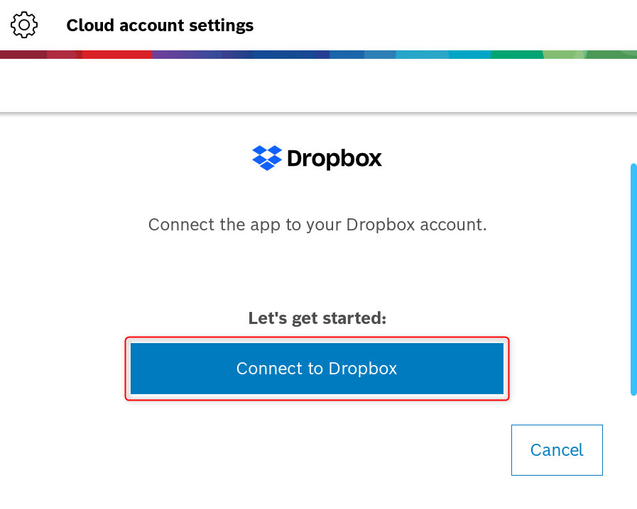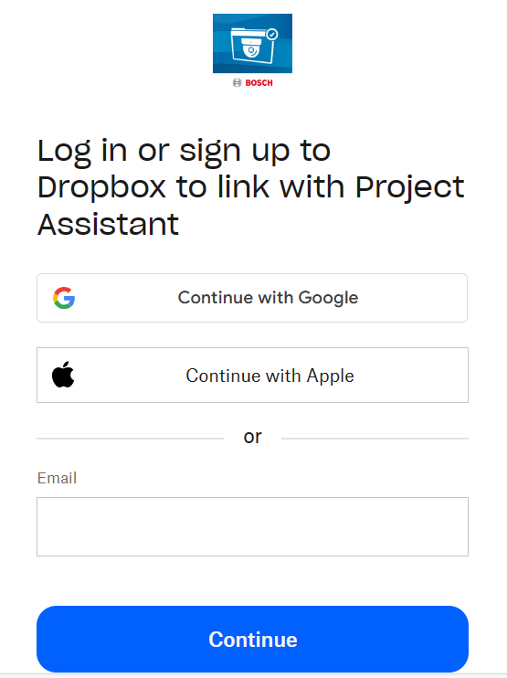 5. Login or sign up to Dropbox to link with Project Assistant App