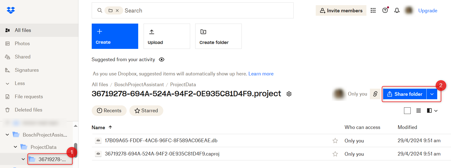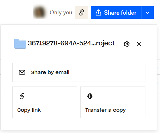 9. Select the project folder you would like to share and click Share folder: